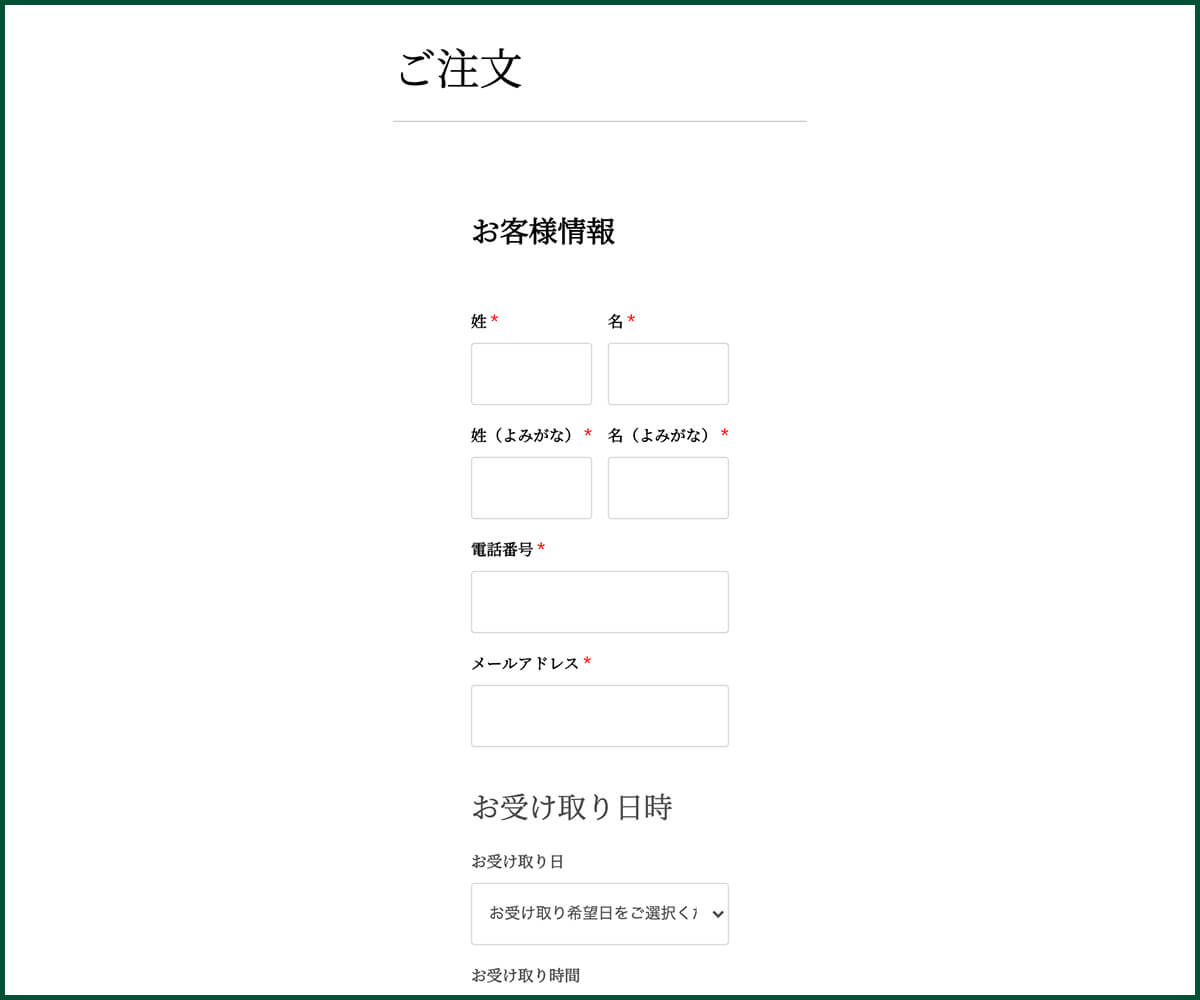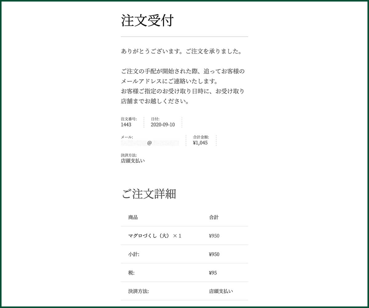 注文受付画面が表示されてご注文完了となります。