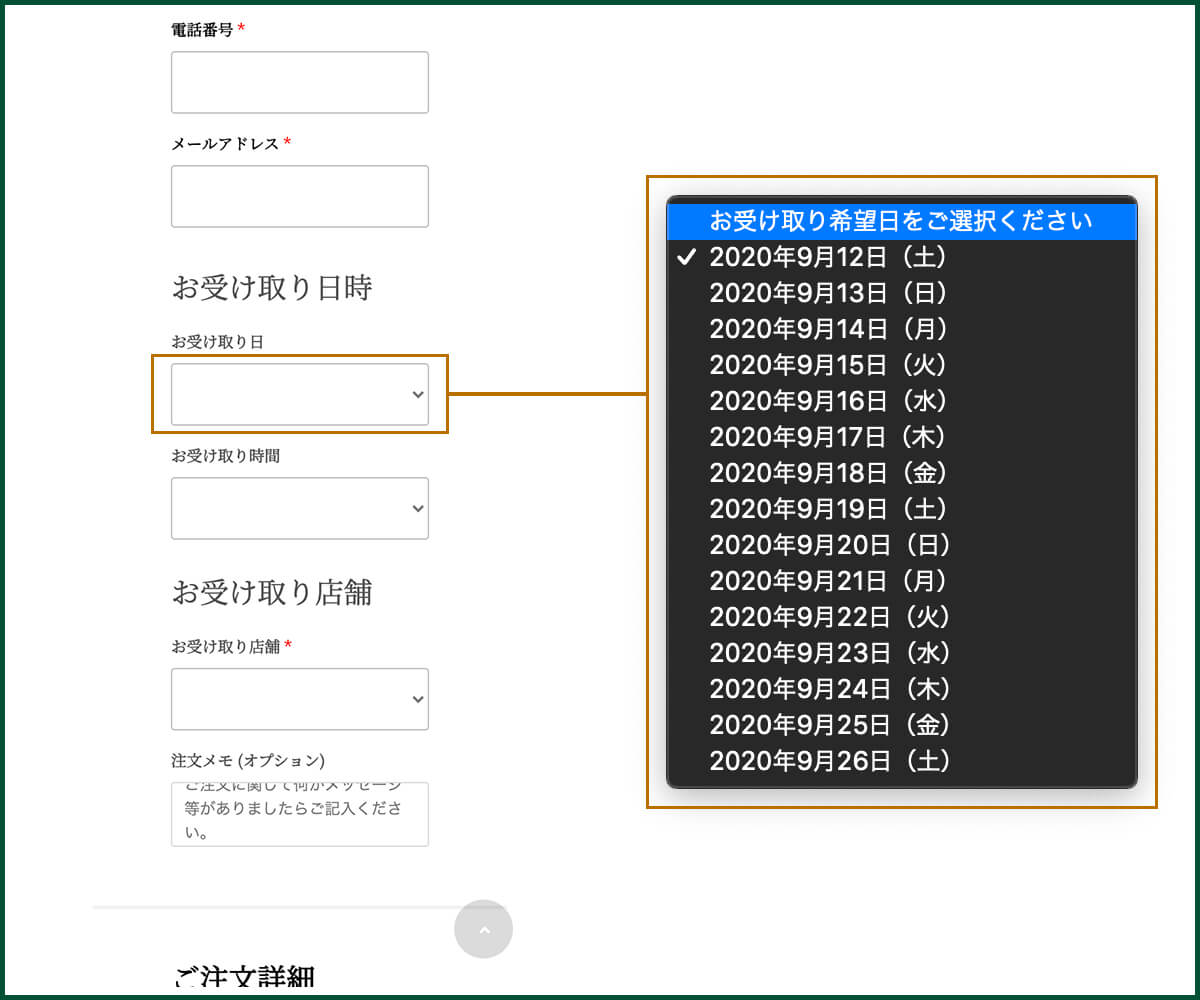 STEP7 お受け取り日時を入力する(3)