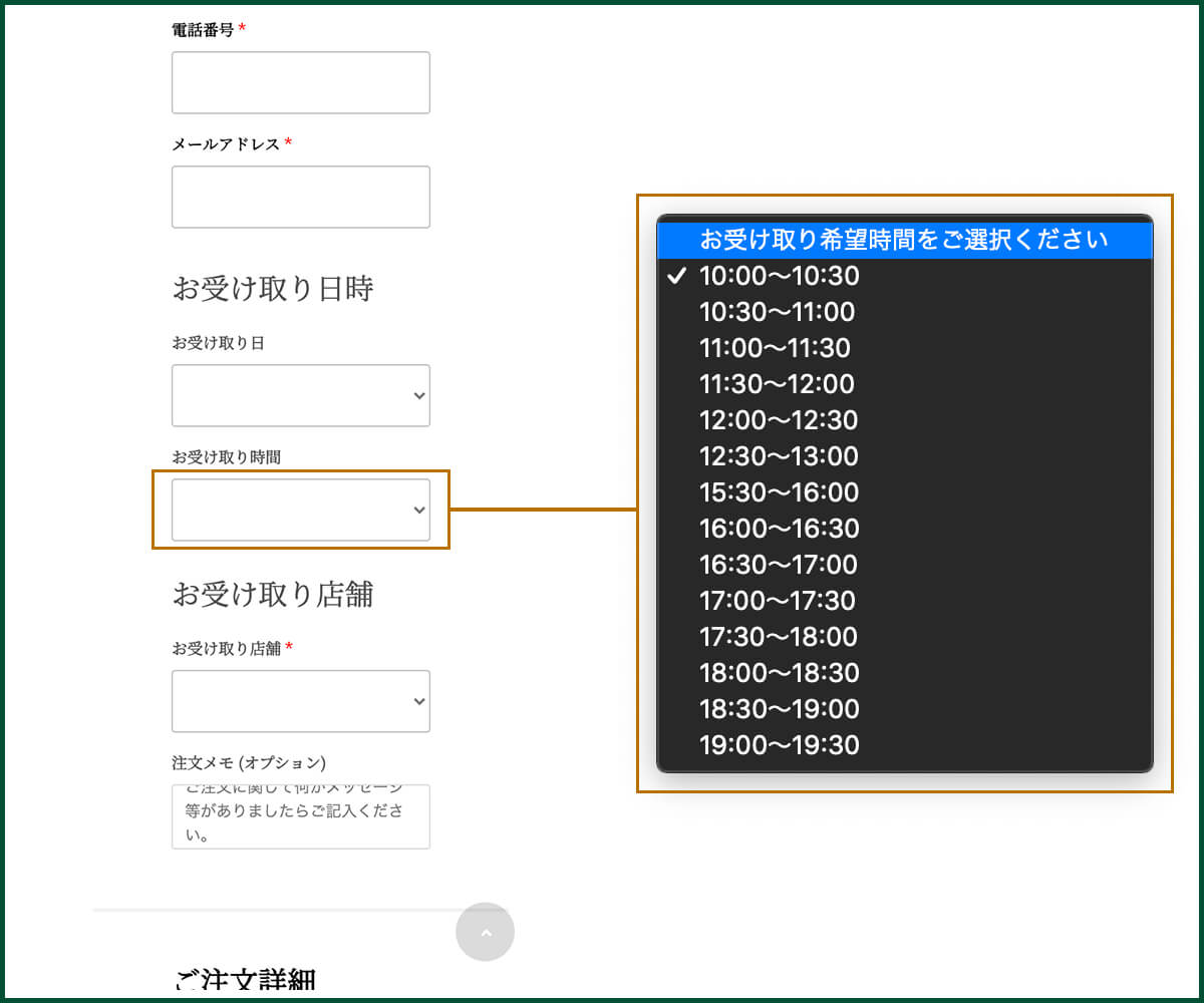 ご希望のお受け取り時間を指定してください。