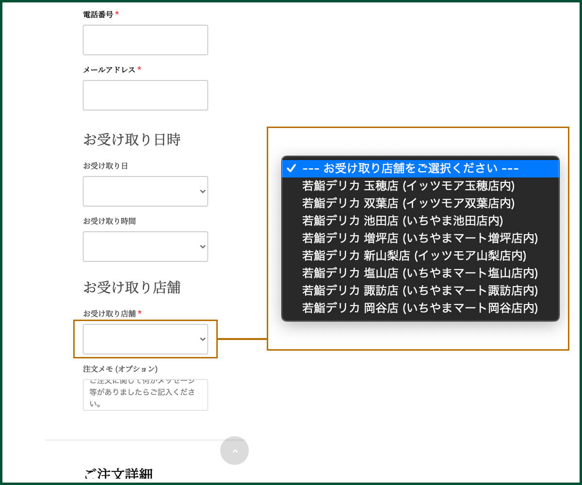 ご希望の受け取り店舗を指定してください。