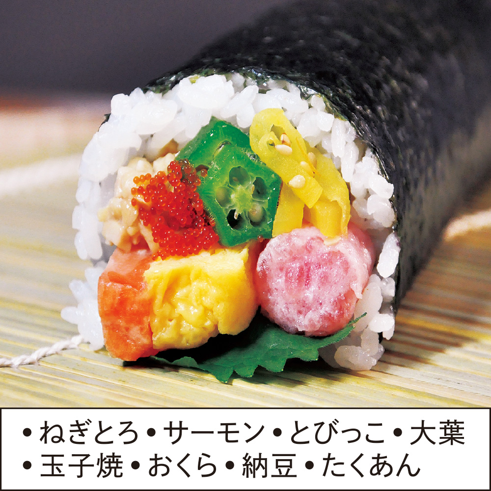 ・ねぎとろ・サーモン・とびっこ・大葉・玉子焼・おくら・納豆・たくあん
